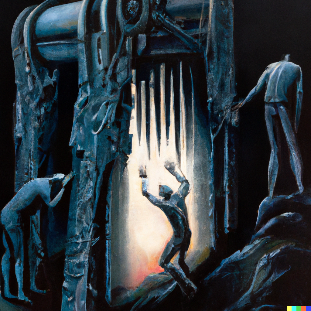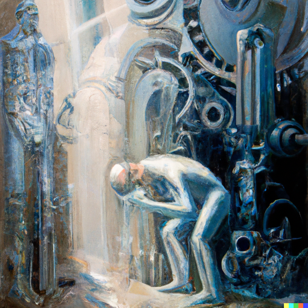 Author's note: Open AI DALL·E is non-violent to its fullest extent. So much in fact that for many things you'll receive a warning rather than a set of images. Maybe one day we'll be able to see how violent the wheels of progress really are.